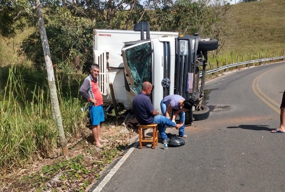 No momento do acidente o caminhão derramou combustível na pista, o motorista que estava sozinho, sofreu um ferimento na perna e passa bem.
