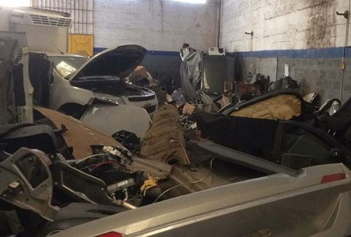 No estabelecimento, foram encontrados quatro veículos inteiros, três carcaças de veículos que já haviam sido completamente depenados, além de diversas partes e peças de automóveis: pelo 23 de carros diversos, além de motores, portas, porta-malas, bancos, painéis, entre outros componentes.