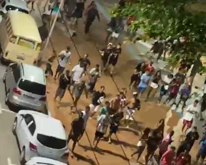 A confusão teria começado com uma briga entre banhistas durante um evento clandestino. A polícia precisou usar bombas de gás lacrimogênio e spray de pimenta para dispensar a multidão.